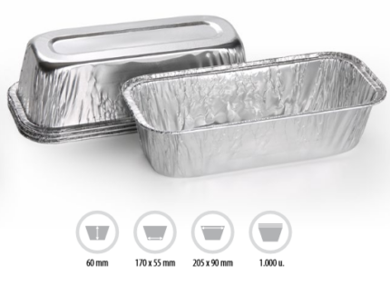 Envase aluminio rectangular 205×90