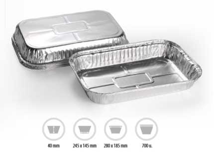 Envase aluminio rectangular 280×185